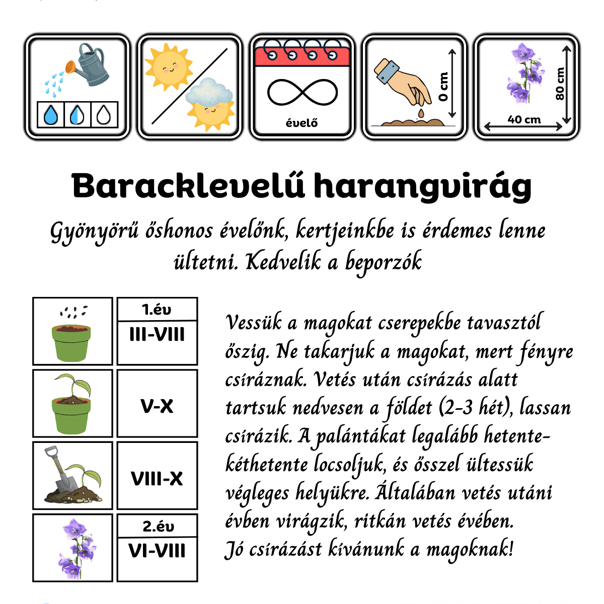 Baracklevelű harangvirág (Campanula persicifolia) 0,25 g, ~3500 mag