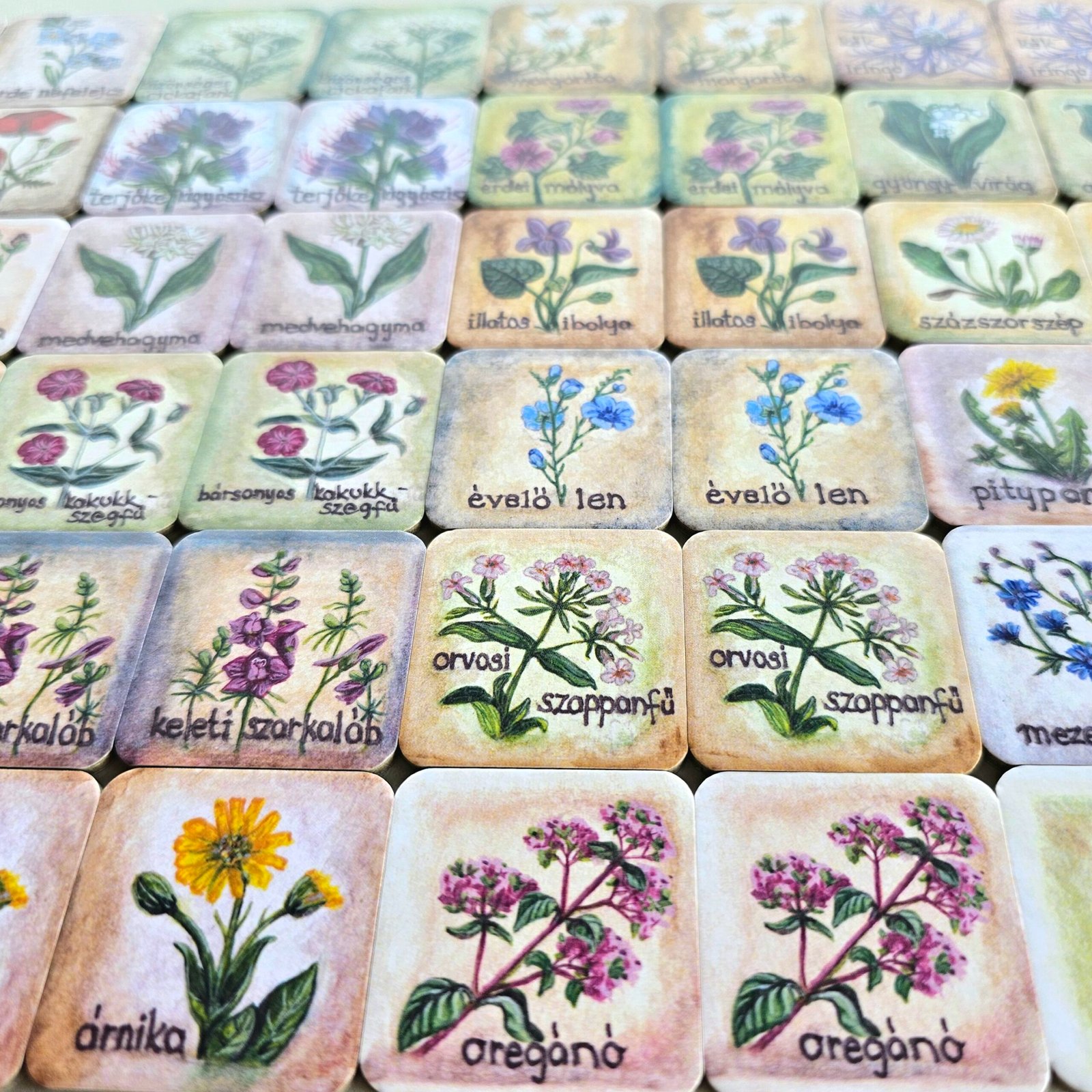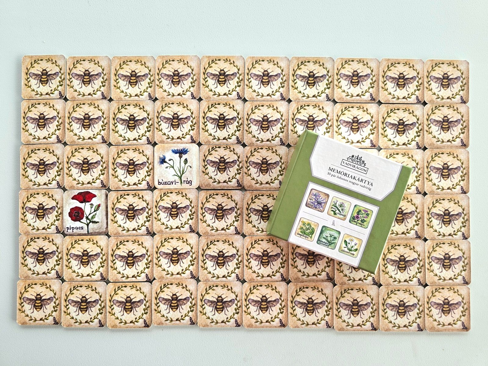 Egy nagyon tehetséges festőművésszel, Bognár Zsófival összeálltunk, aki ehhez a memóriakártyához gyönyörűen megfestette 30 őshonos magyar vadvirágunkat. Ebben a szettben 30 pár memóriakártyát találtok, amikkel a gyerekek vagy a felnőttek játékosan meg tudják ismerni a vadvirágainkat. Az illusztrációk igazán valósághűek és csodásak lettek, igazi csemege és tökéletes ajándék a vadvirágok és a természet szerelmeseinek.